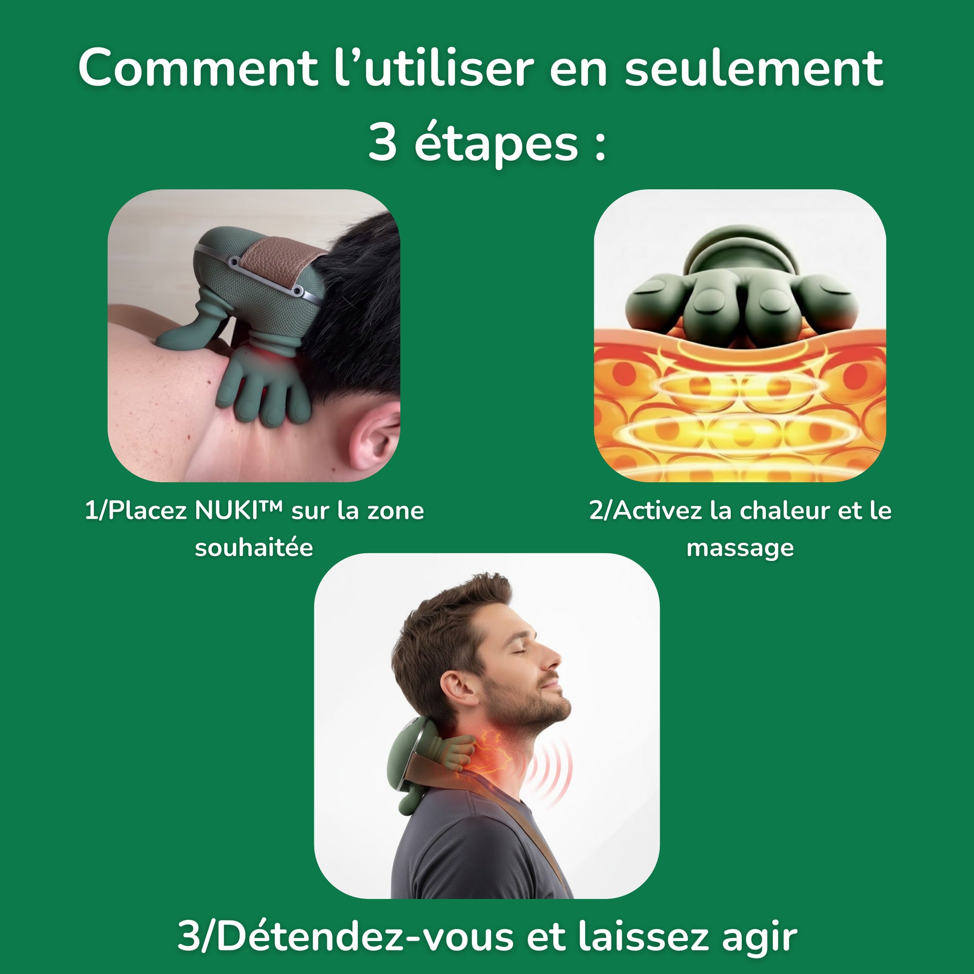 NUKI™ combine chaleur relaxante et massage ciblé pour aider les muscles à se relâcher naturellement.